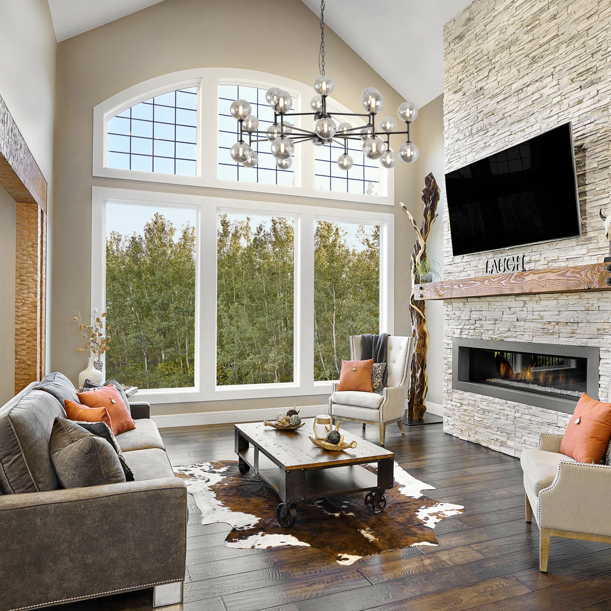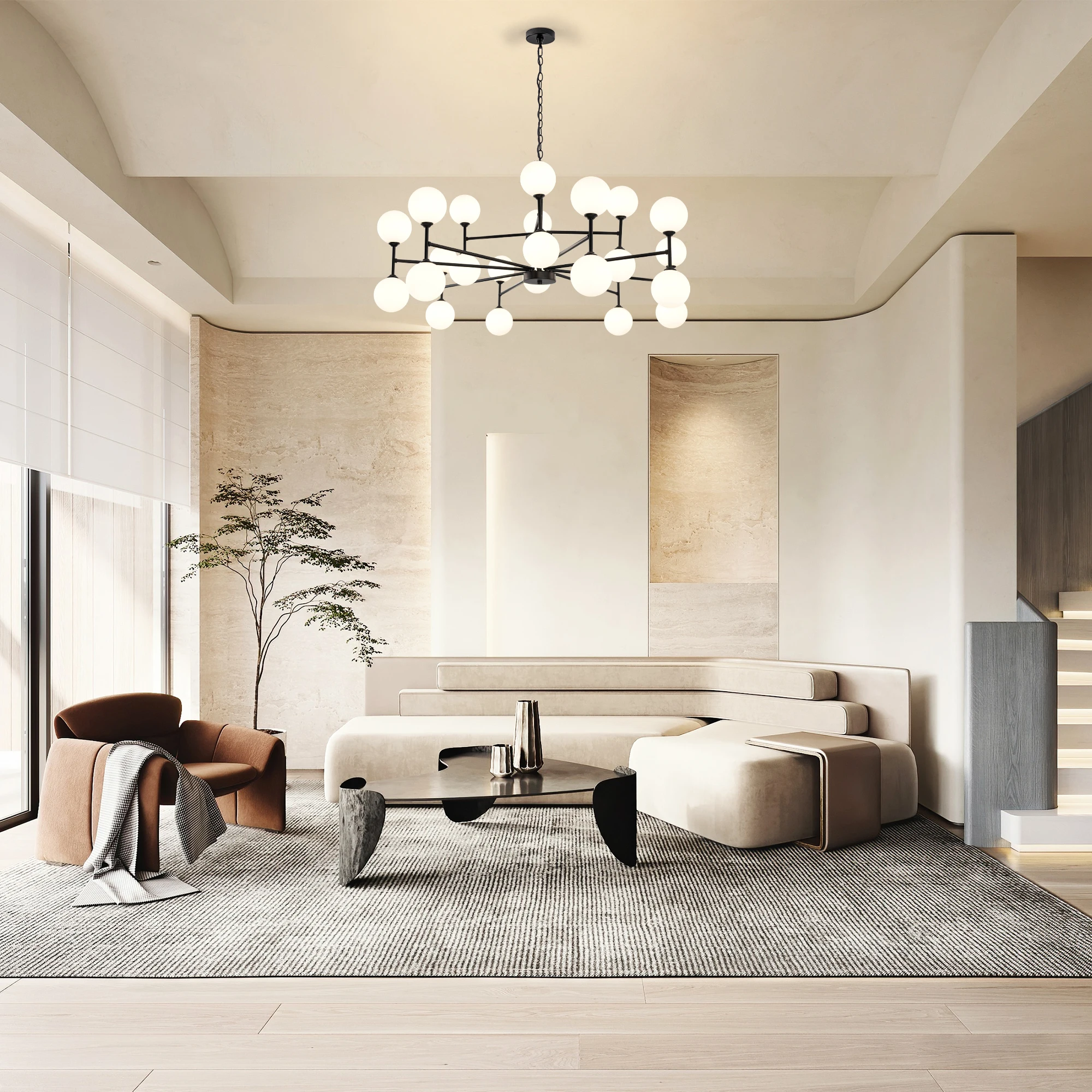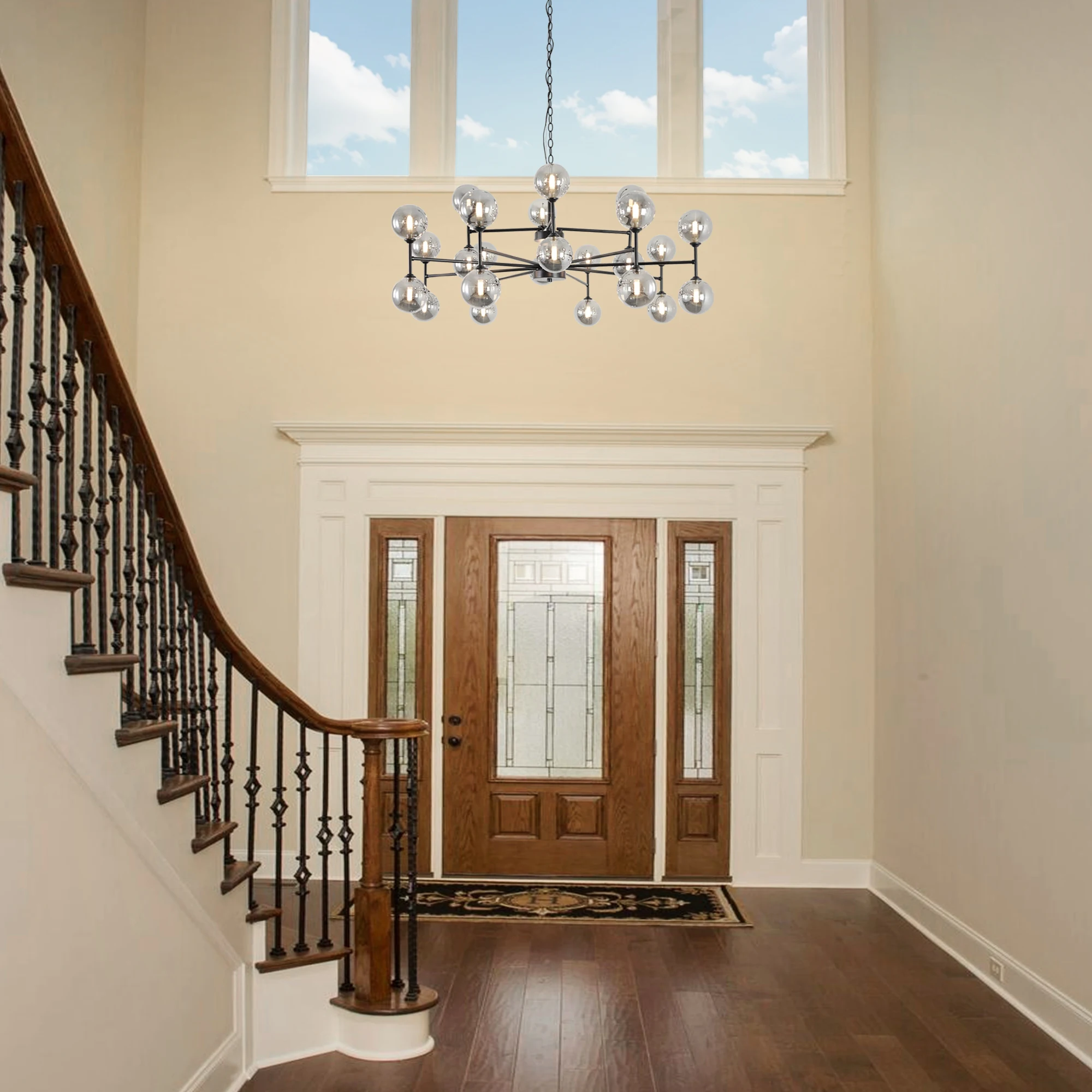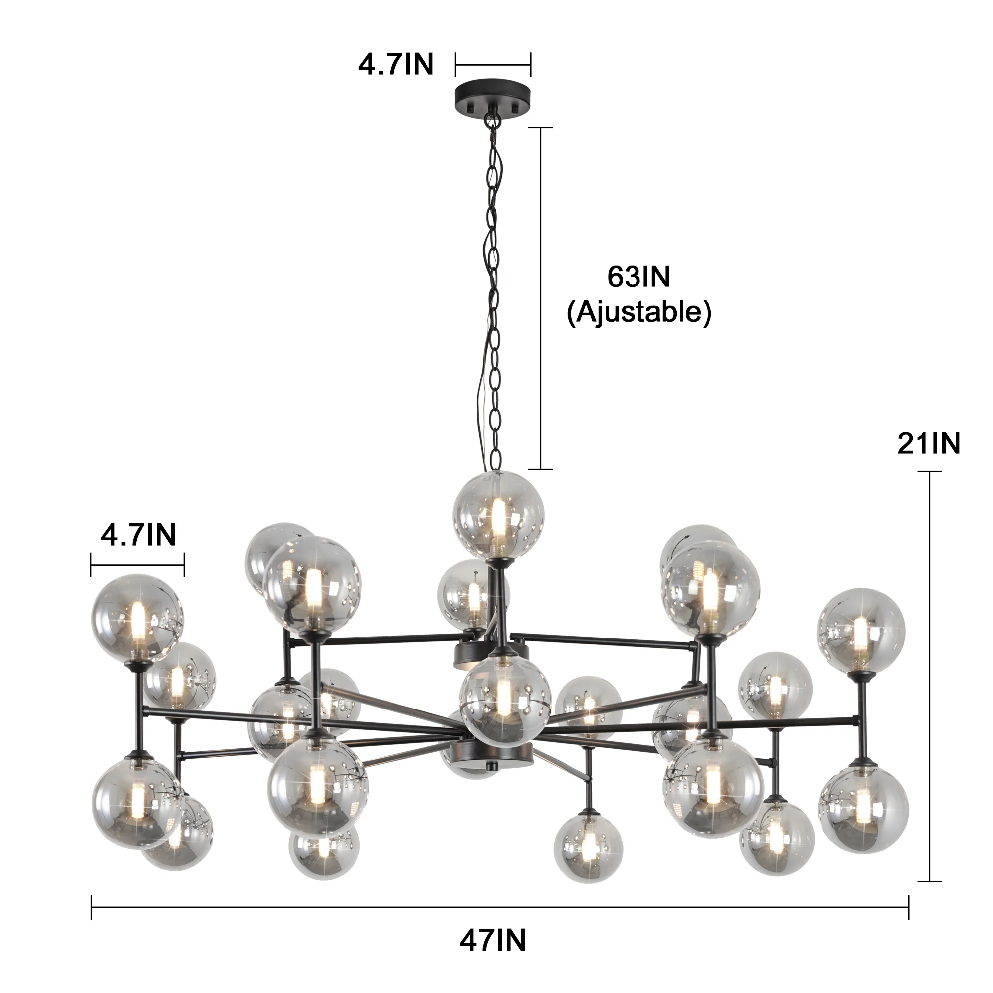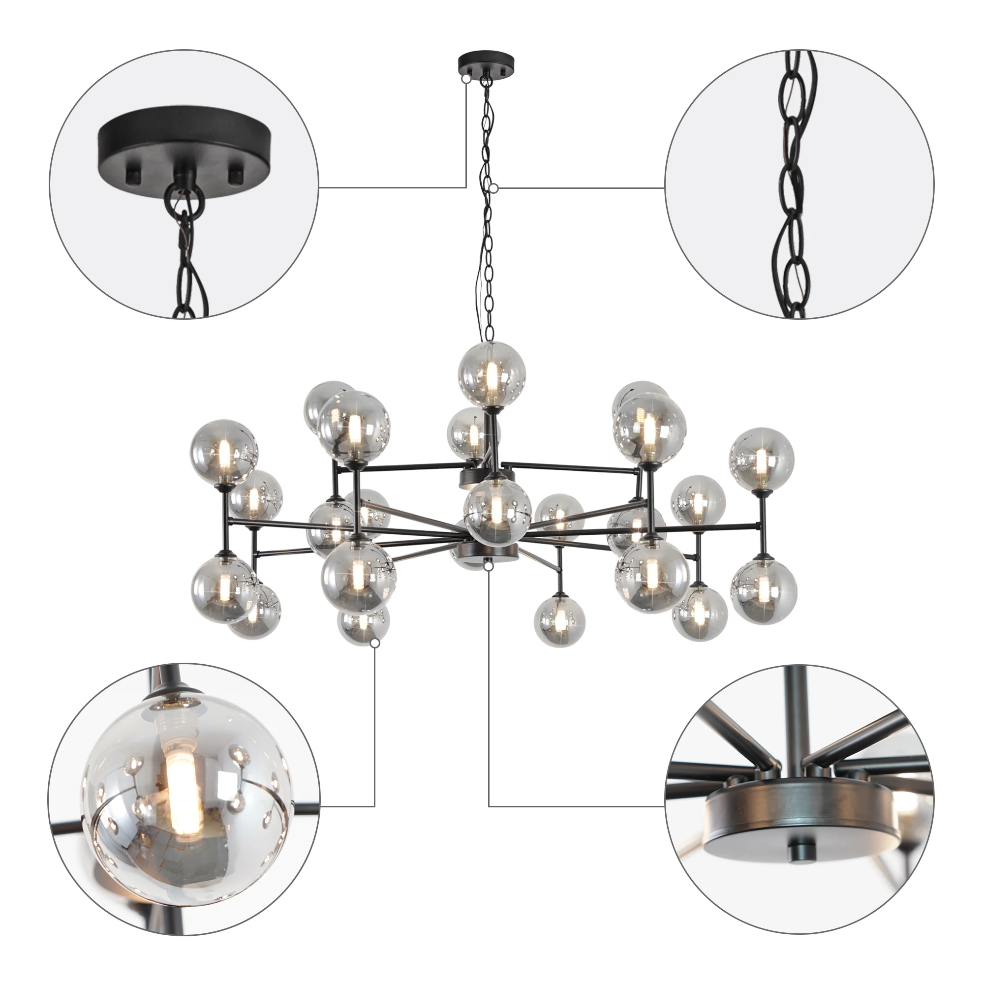 24-Light Sputnik Chandelier Black with Glass Shades Bubble Chandelier for Dining Room Living Room Sputnik Light Fixtures