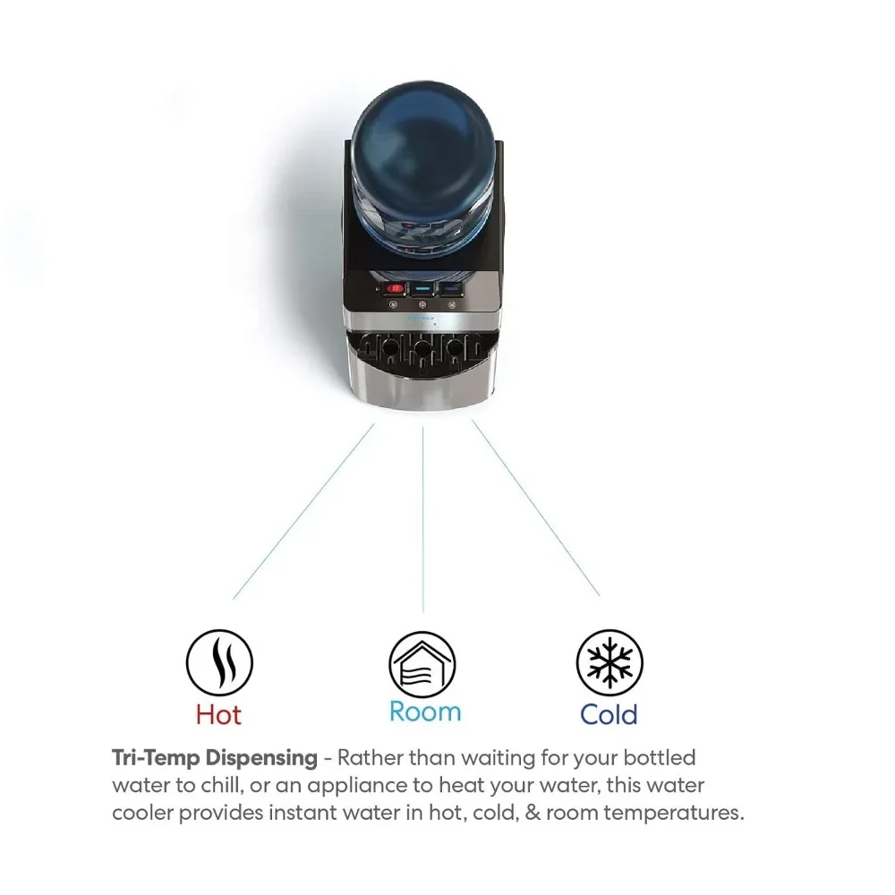 - THREE TEMPERATURES: Three temperature settings allow you to customize your drinking experience. Essential dispenser features cold, room temperature or hot water