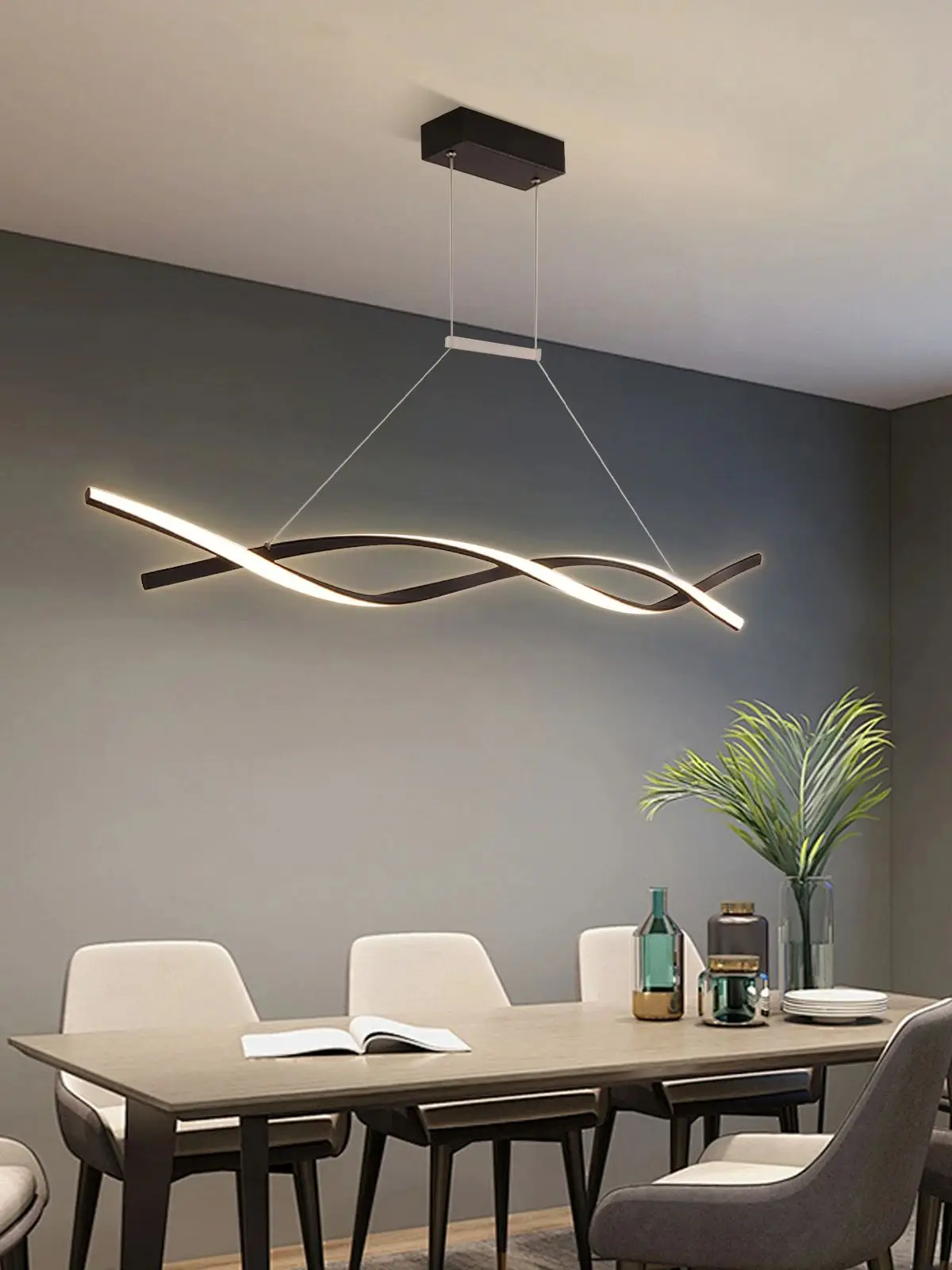 Modern Pendant Light with Remote Control, Black Curved Lines Pendant Light Three Lighting Modes, Pendant Light for Bedrooms