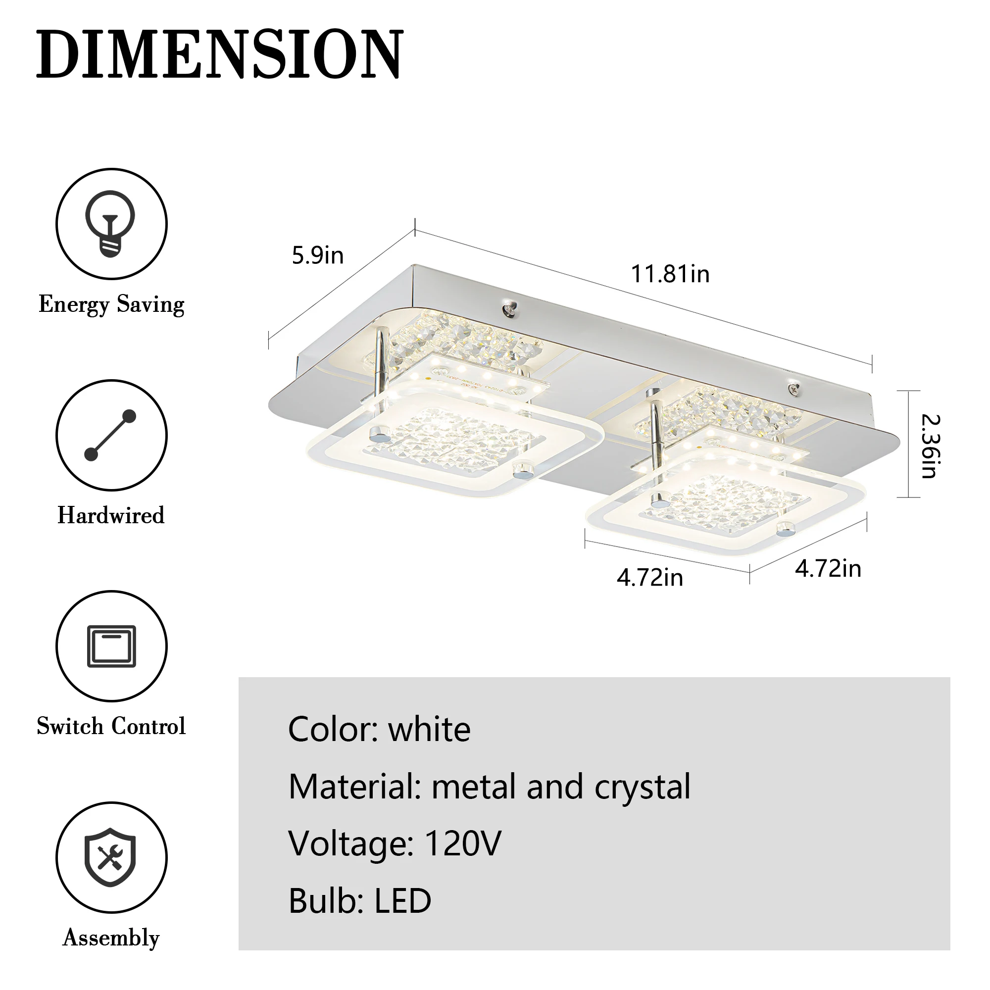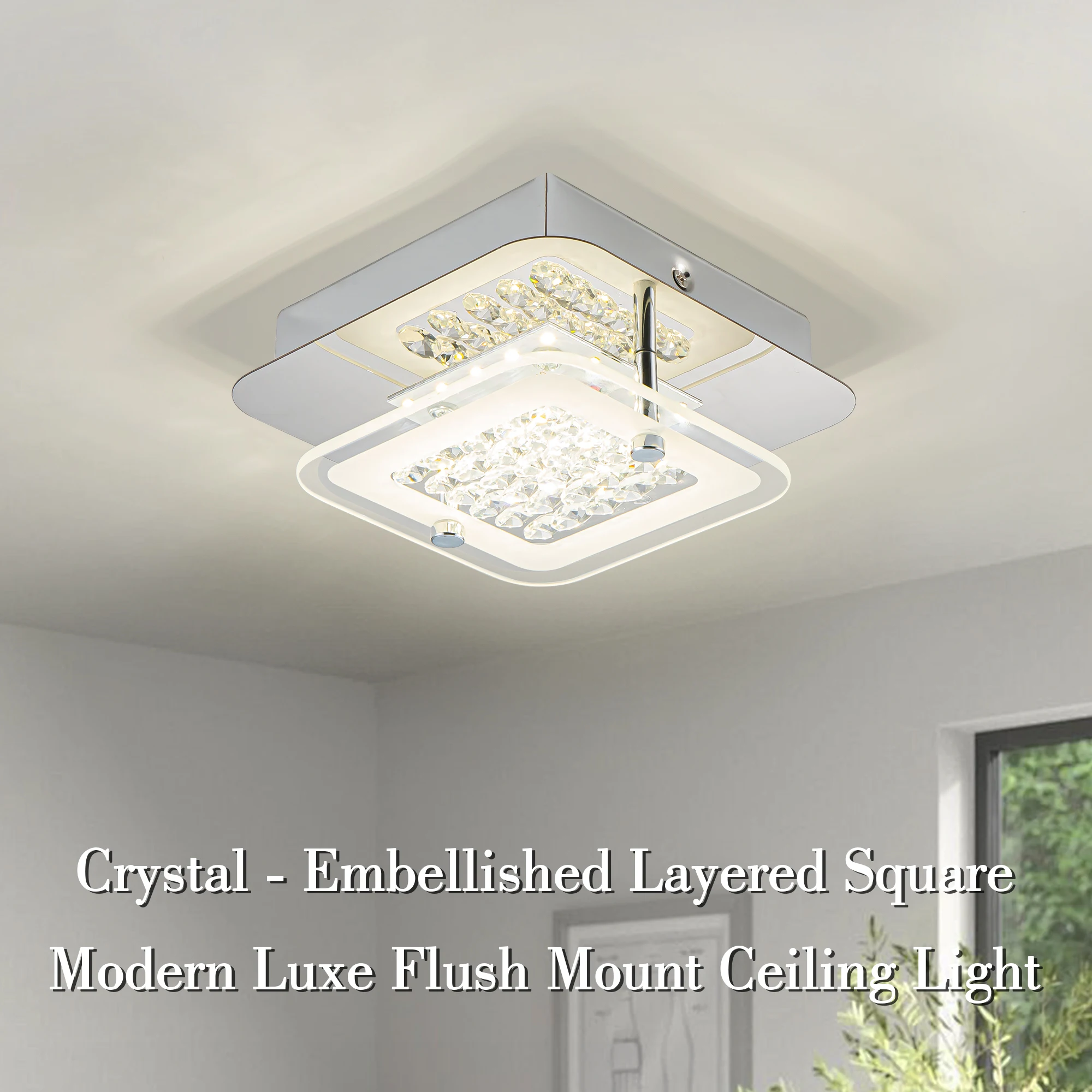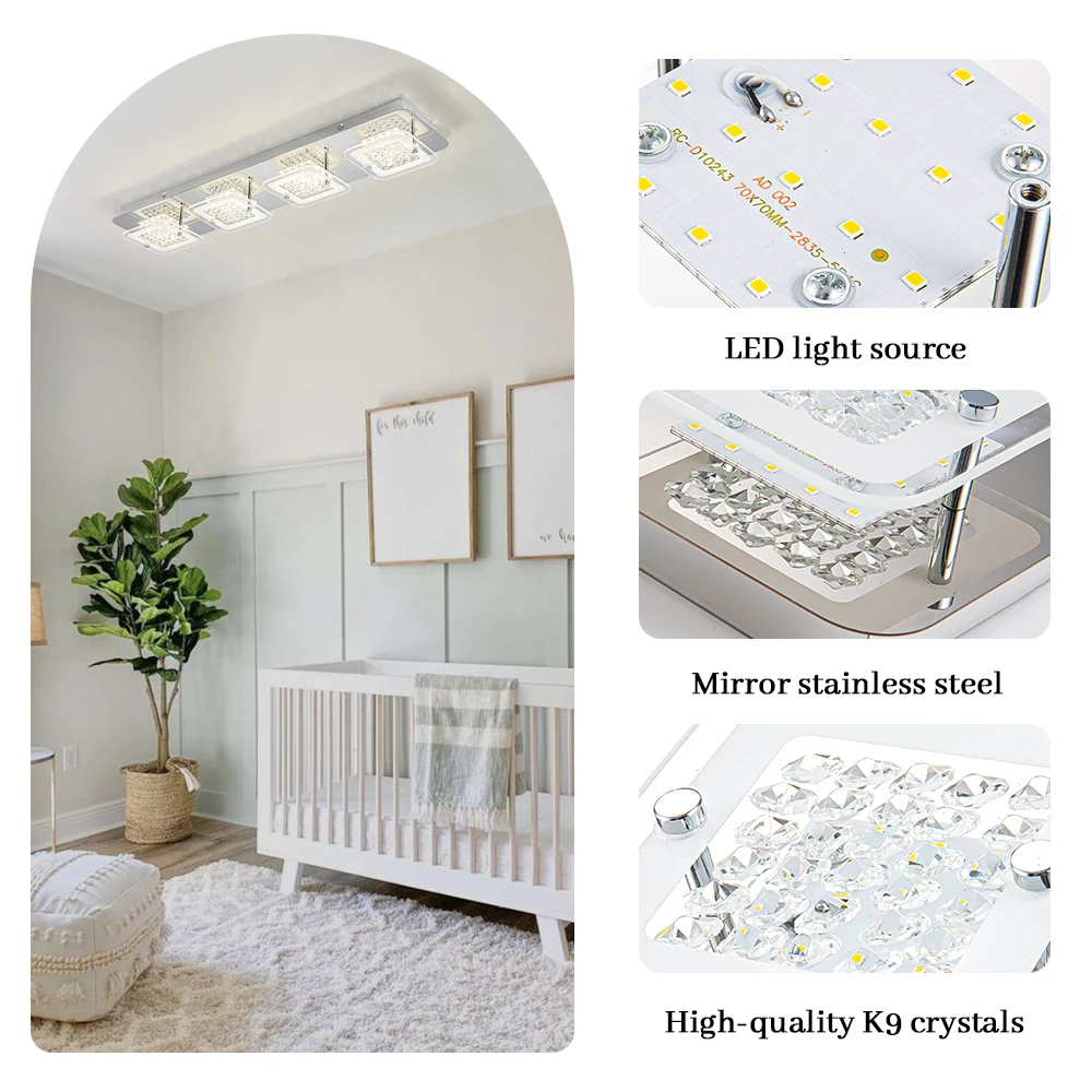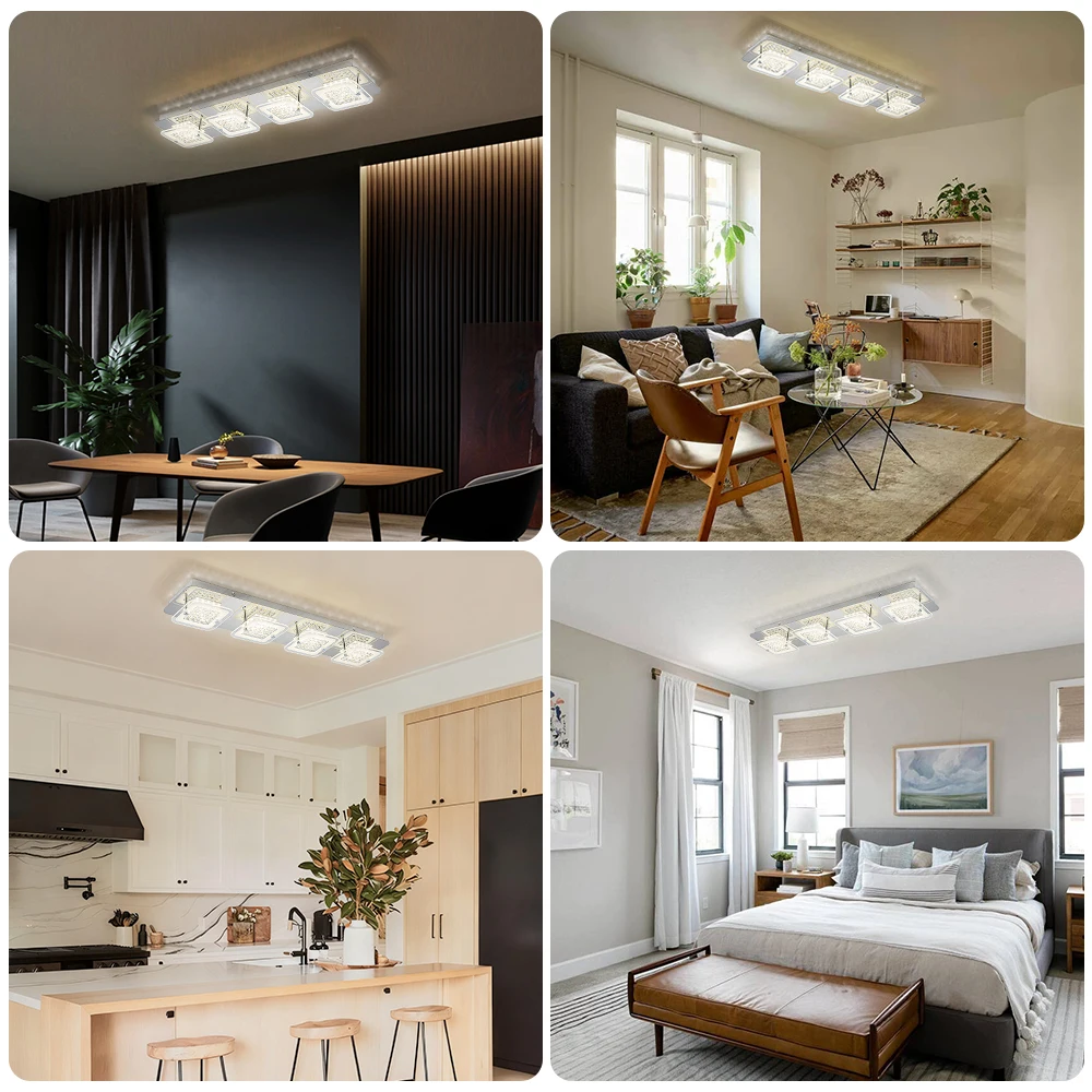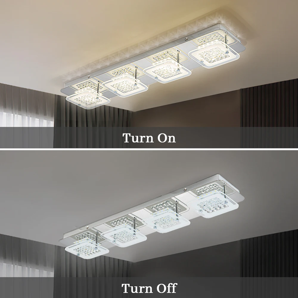 1pcs Modern Rectangle Crystal Ceiling Light Dimmable Living Room Bedroom Study Home Decor Lighting
