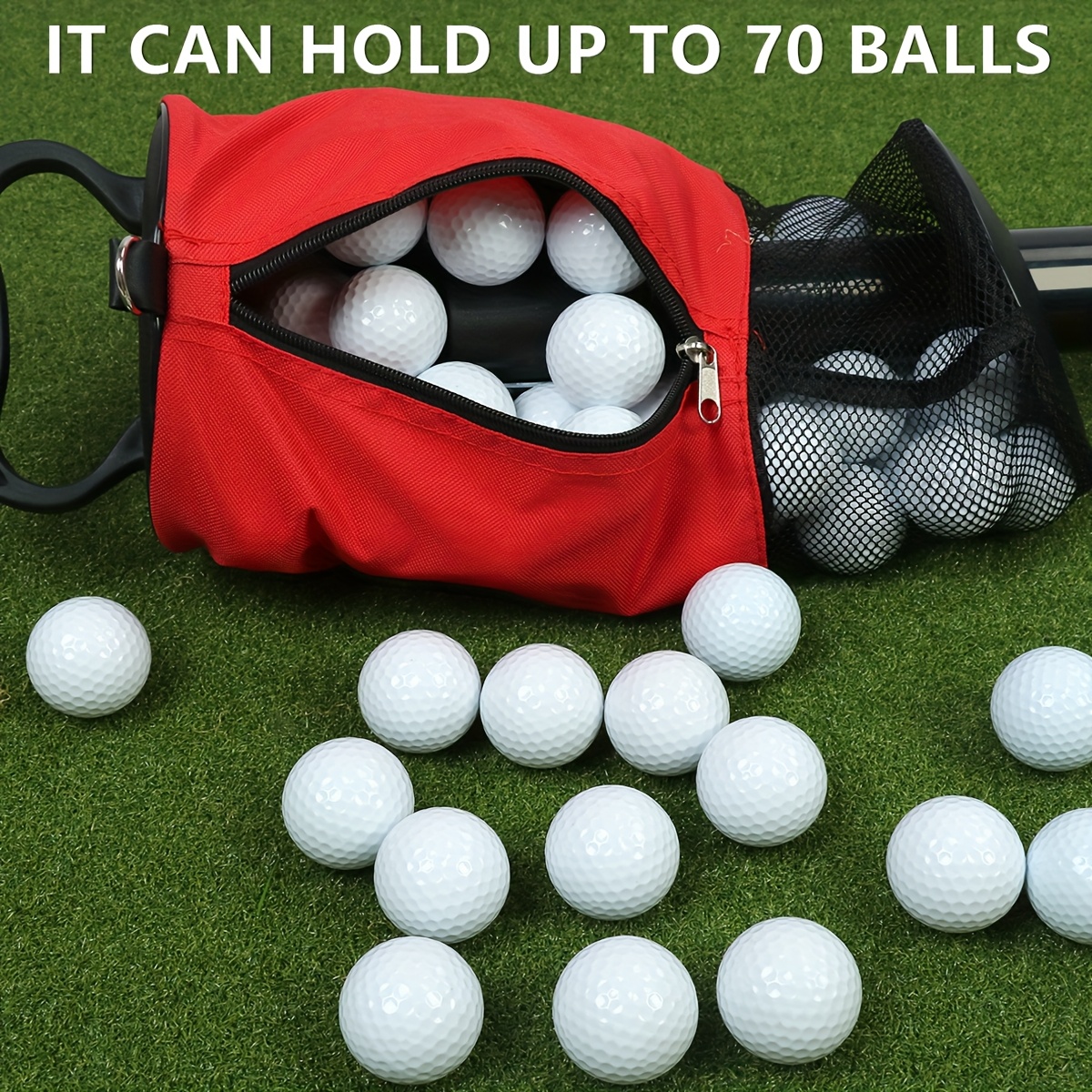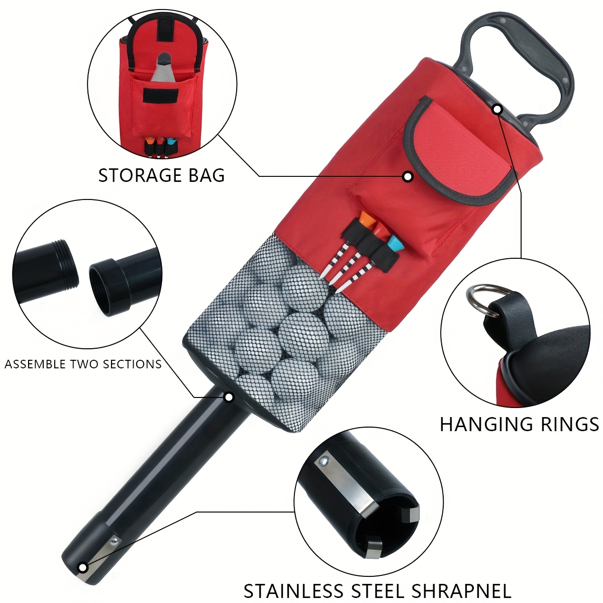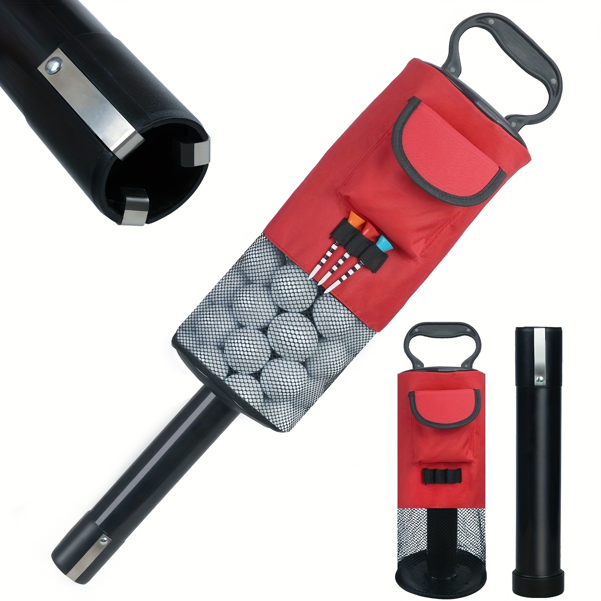Portable Golf Ball Picker Tool with Detachable Plastic Tube – Lightweight Nylon Fabric Bag in Red/Blue/Black, Fit for All Golfers, Golf Accessory | Cylindrical Golf Picker | Durable Zipper Closure, Golf Accessories